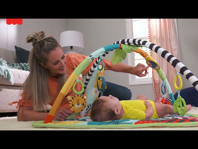 Γυμναστήριο Fisher-Price® Δάσος 3 σε 1. Το γυμναστήριο τροπικό δάσος 3 σε 1 της Fisher-Price® ακολουθεί την ανάπτυξη του μωρού από νεογέννητο, προσφέροντας πολλές ώρες διασκεδαστικής απασχόλησης. Τα νεογέννητα μπορούν να ξαπλώσουν στο μαλακό πάπλωμα και να παίξουν με τα 6 κρεμαστά παιχνίδια. Για παιχνίδι μπρούμυτα, η ρυθμιζόμενη αψίδα κατεβαίνει για να έρθουν τα παιχνίδια πιο κοντά στο μωρό, ενώ η μαλακή καμηλοπάρδαλη στηρίζει το μωρό σας καθώς παίζει. Επιπλέον, o βραδύπους κρατάει το παιχνίδι ενδιαφέρον όταν το μωρό μεγαλώσει και παίζει μαζί του καθιστό.