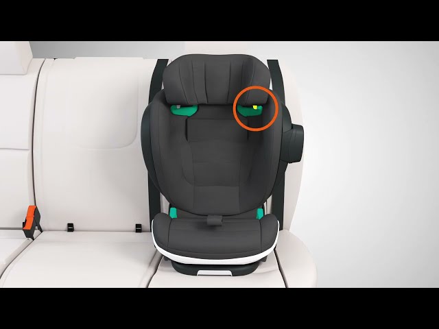 Εύκολη ρύθμιση ύψους ώστε να μεγαλώνει μαζί με το παιδί. Οι λαβές ρύθμισης ύψους του προσκέφαλου είναι προσβάσιμες και από τις δύο πλευρές, ακόμα και όταν το παιδί κάθεται επάνω στο κάθισμα και επιτρέπουν σε αυτό να μεγαλώνει μαζί με το παιδί από 100 έως 150 εκ.