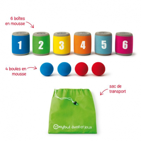 | Διάσταση | 6 κουτιά Υ. 9 cm. 4 μπάλες 4,5 cm. Περιλαμβάνεται σάκος τακτοποίησης. |