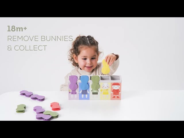 Στάδιο 2 - Παιχνίδι με αντιστοίχιση χρωμάτων: καθώς τα νήπια προσαρτούν τα ειδικά σχεδιασμένα για μικρά χεράκια μανταλάκια λαγουδάκι στο πλούσια εικονογραφημένο κουτί με βάση τα χρώματα των ρούχων τους , αναγνωρίζουν και ονομάζουν τα χρώματα βοηθώντας τα να αναπτύξουν τις δεξιότητές τους στην αναγνώριση των χρωμάτων.