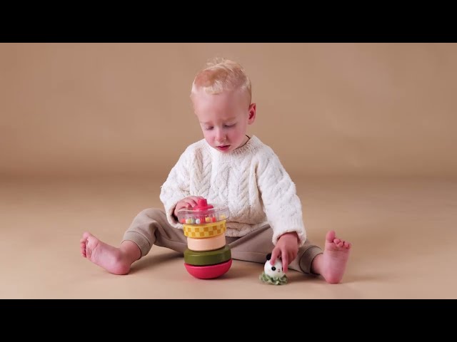 Στοιβάζετε, κουνάτε, κυλάτε και παίζετε! Το Stack-a-Panda είναι ένα πολυαισθητηριακό παιχνίδι στοίβαξης, για μικρά παιδιά 9 μηνών και άνω, με διαφορετικές υφές, κουδουνιστές, στροβιλιστές χάντρες, που κροταλίζουν και φωτεινά χρώματα, που διεγείρουν την ανάπτυξη των αισθήσεων του μωρού. Κάθε σετ περιλαμβάνει 4 πολύχρωμα δαχτυλίδια, 2 μονόχρωμα, 1 με έντονα σχέδια, όπως ρίγες ή σκακιέρα και 1 διαφανές δαχτυλίδι γεμάτο με χάντρες που κροταλίζουν, για επιπλέον αισθητηριακή διασκέδαση.