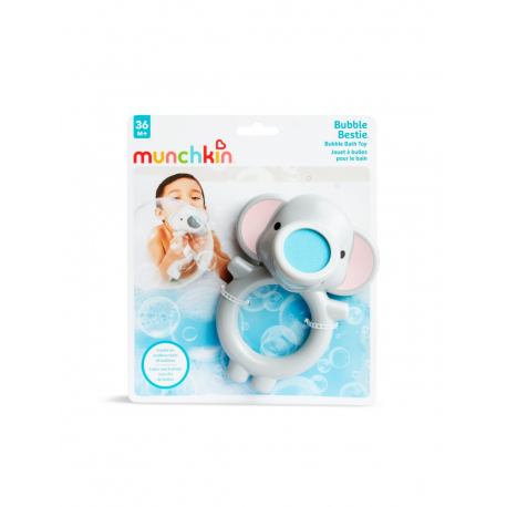 Παιχνίδι για φούσκες μπάνιου Munchkin Δεν υπάρχει τίποτα πιο γλυκό από έναν ελέφαντα που βγάζει φυσαλίδες από την προβοσκίδα του. Γνωρίστε το Bubble Bestie – το νέο, αγαπημένο φίλο για το μπάνιο του παιδιού σας! Απλώς βρέξτε το πανί, προσθέστε σαπούνι ή σαμπουάν και φυσήξτε το στόμιο για να δημιουργήσετε μια μαγική ροή φυσαλίδων. Έξυπνα σχεδιασμένο για να αφήνει τις φυσαλίδες να «εκρήγνυνται» από την προβοσκίδα χωρίς να απορροφώνται, αυτό το αξιολάτρευτο παιχνίδι μπάνιου διδάσκει με ασφάλεια τη σχέση αιτίας-αποτελέσματος και συμβάλλει στην εξάσκηση του συντονισμού χεριών-ματιών. Το σώμα του -σε σχήμα δαχτυλιδιού- καθιστά εύκολο το κράτημά του και, χωρίς την ανάγκη για αλλαγή μπαταριών ή ηλεκτρονικών εξαρτημάτων, θα είναι πάντα εκεί για το μικρό σας.