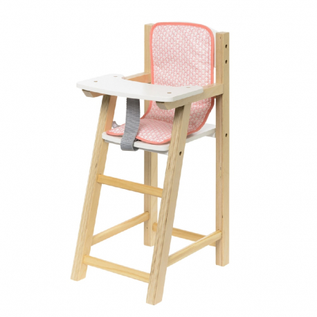 Με αυτή την ξύλινη καρέκλα φαγητού, το παιδί σας θα μπορεί να δημιουργήσει σκηνές με τα πρώτα του κουκλάκια. Σταθερή και ρεαλιστική, την καλεί να αναπαράγει καθημερινές κινήσεις, όπως να κάθεται την κούκλα του για να ταΐσει. Μιμούμενο τις κινήσεις του μπαμπά και της μαμάς, το παιδάκι σας εκφράζει και εξωτερικεύει τα συναισθήματά του. Το μικρό επιπλέον πλεονέκτημα: Το ύφασμα αυτής της καρέκλας είναι πλενόμενο.