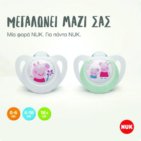 Πιπίλες Nuk® Star Peppa Pig μέγεθος 3 (18-36M) με θήκη, σετ των 2