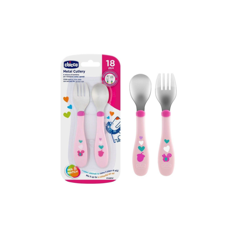 - Ανοξείδωτο ατσάλι: Τα κουταλοπίρουνα Chicco είναι κατασκευασμένα από ανοξείδωτο ατσάλι για να εξασφαλίζουν υψηλή υγιεινή. - Εύκολος χειρισμός: Το πιρούνι και το κουτάλι είναι εργονομικά, μικρά και ελαφριά, σχεδιασμένα για τα χεράκια και το στόμα των παιδιών.
